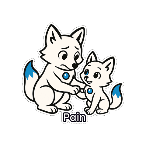 a cartoon drawing of a fox and a puppy with the word pain below them