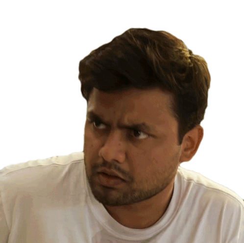 a man with a beard is wearing a white shirt and making a face