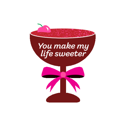 a martini glass with a cherry on top and the words " you make my life sweeter "