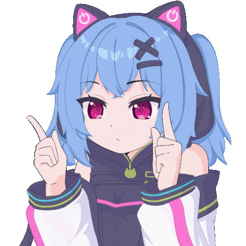 a girl with blue hair and red eyes is wearing a cat ear headphone