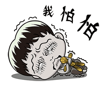 Souichi Tsujii, a chibi character, is terrified and crying, clutching a charm, with 'I'm so scared' in Chinese.