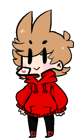 Chibi Tord, the Eddsworld character, smiles sweetly in his red hoodie, holding a tiny heart note.