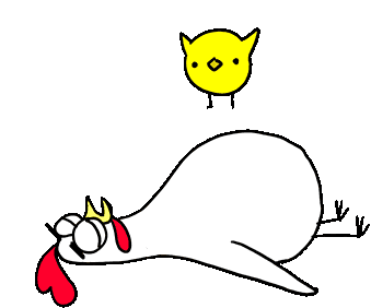 Chicken Bro, a white chicken, is fast asleep with 'Zzz' bubbles, while a small yellow chick jumps off its back.