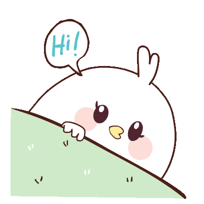 A cute, cartoon white chicken peeks over a green hill and waves its wing in a friendly greeting.