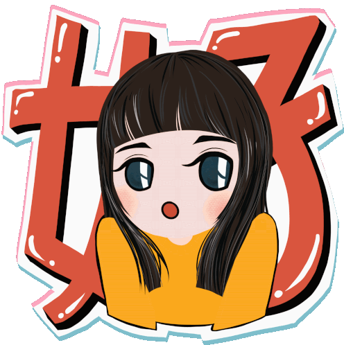 Chihsiou's animated sticker features a surprised girl with big eyes and dark hair, set against the Chinese text '好了' (Okay).