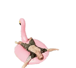 Ryan Dungey relaxes on a pink flamingo inflatable float, sunbathing and chilling out in the water.
