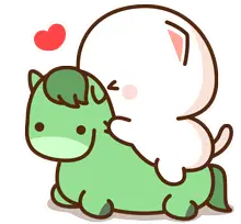 The adorable Mochi Peach cat character enjoys a tasty snack, munching on chips from a bag with a happy expression.