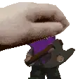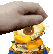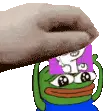 A pixel art hand gently holds a cute, chonky cat's head, representing the game Defi Kingdoms.