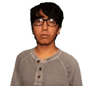 a man wearing glasses and a blue shirt with buttons