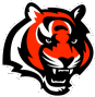 The iconic Cincinnati Bengals tiger logo, featuring a fierce orange and black tiger head with bared teeth.