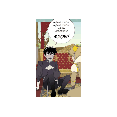 Cinderella Boy Stargoth sticker featuring a cartoon man sitting on a rug with a 'meow' speech bubble.