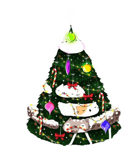 Cindy Suen's adorable animated Christmas tree adorned with cute cats, candy canes, and festive ornaments.