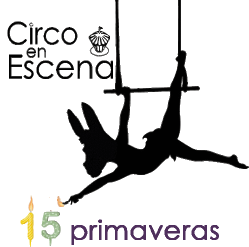 a poster for circo en escena shows a silhouette of a woman hanging upside down