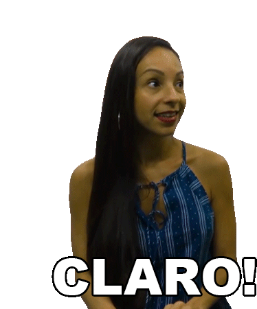 A woman with long dark hair looks surprised or excited, with the word 'CLARO!' (Of course!) displayed, from Drelacionamentos.