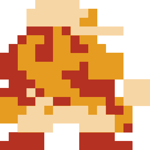 A classic pixel art character appears hacked and glitching with digital effects, creating a retro, distorted look.