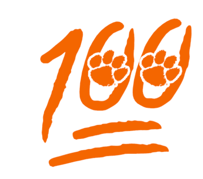 An orange "100" emoji with Clemson Tigers paw prints inside the zeros, perfect for showing team spirit.