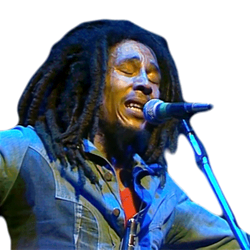Bob Marley passionately sings into a microphone with his eyes closed, expressing deep emotion during a live performance.