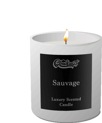 Cloudburzt Sauvage luxury scented candle in a white jar with a black label, featuring a lit flame.