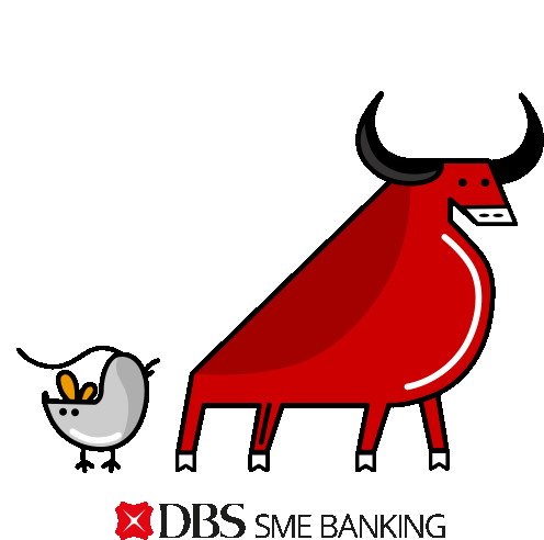 Celebrate Chinese New Year with this animated sticker featuring a small mouse and a large red bull, alongside the DBS SME Banking logo.