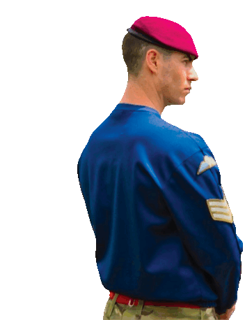 Coachmike, a tactical military athlete, stands in uniform with a red beret, showcasing his dedication and discipline.