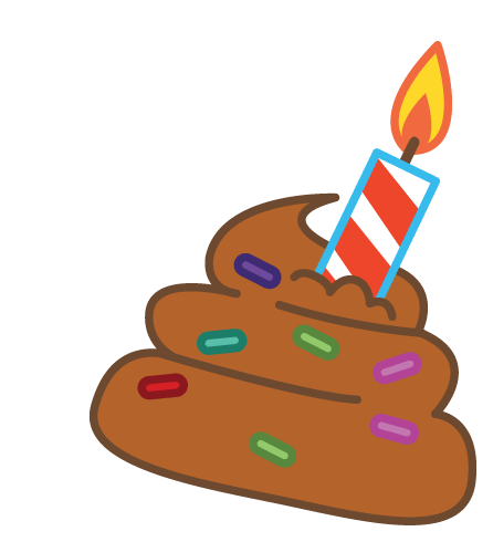 A humorous animated sticker featuring a pile of poop decorated with sprinkles and a lit birthday candle, associated with Coco Tacochapeu.