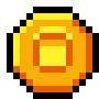 A vibrant pixel art gold coin, featuring a distinct square indentation in its center, perfect for digital currency or retro game themes.