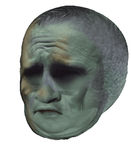 Colin Raff's grotesque sticker features a pale, screaming face with an open mouth, conveying intense emotion.