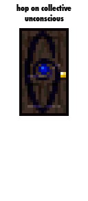 A pixel art sticker from the Yume Nikki Online Project, featuring a mysterious door and a character, inviting to 'Hop On Collective Unconscious'.