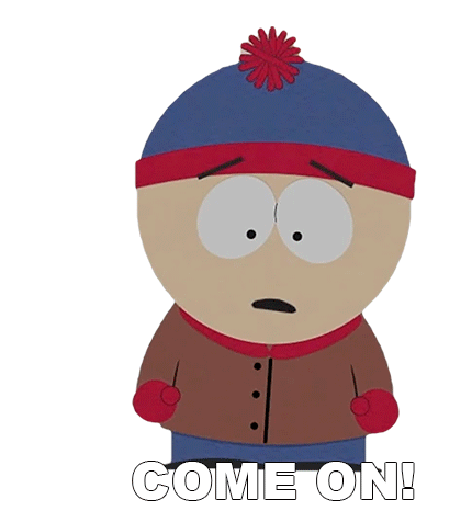 Stan Marsh from South Park covers his nose in frustration, exclaiming 'Come On!' in a classic annoyed gesture.