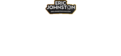Eric Johnston's animated logo featuring his name, website, and a stylized bullwhip, representing his comedy brand.