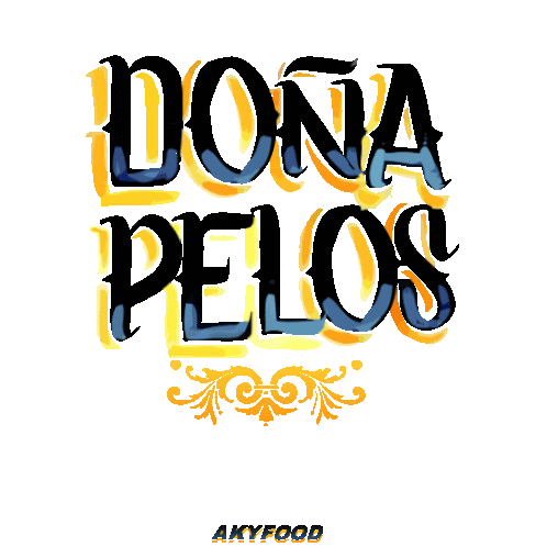 a sign that says doña pelos in blue and yellow letters