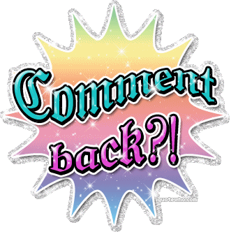 A vibrant animated sticker featuring the text 'COMMENT BACK' in bold white letters against a colorful, looping rainbow background.