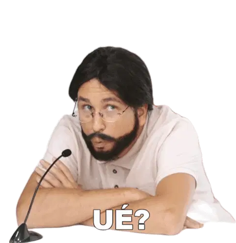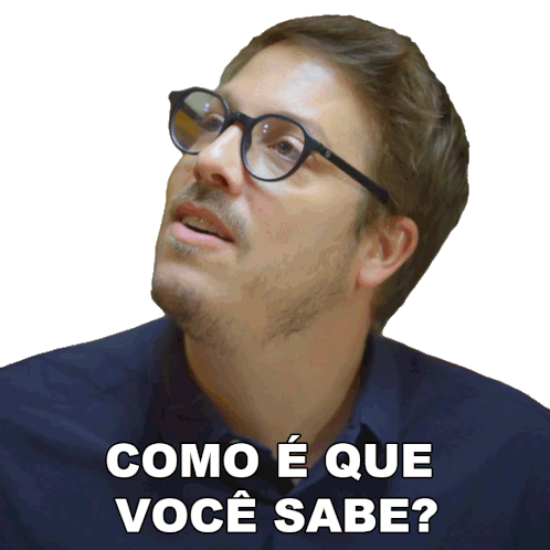 a man wearing glasses has the words como e que voce sabe written below him