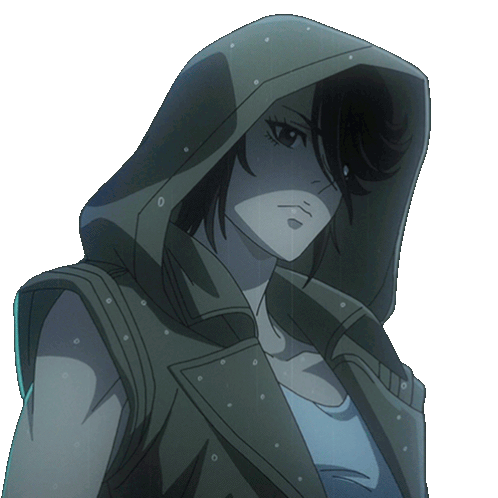 Eiko from Terminator Zero adjusts her hooded vest, looking intently forward in this animated sticker.