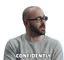 Seth Royale, a bald man with glasses and a beard, wears a grey shirt saying 'CONFIDENTLY' with a thoughtful look.