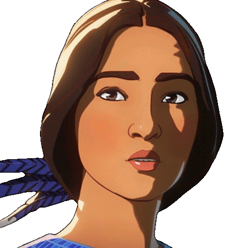Kahhori from Marvel's What If...? animated series shows a thoughtful or slightly confused expression, with a feather in her hair.