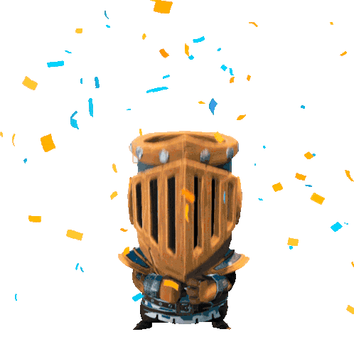 A cheerful knight character celebrates with confetti, expressing congratulations and the message 'YOU ARE THE BEST'.