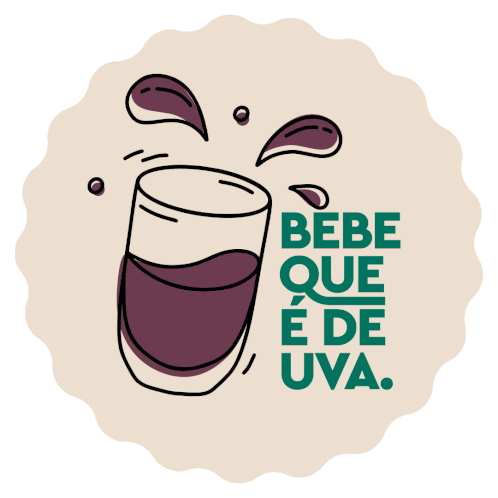 Animated sticker for Consevitis Consevitisrs, featuring a glass of grape juice with the Portuguese phrase 'Bebe que é de uva' (Drink, it's grape).