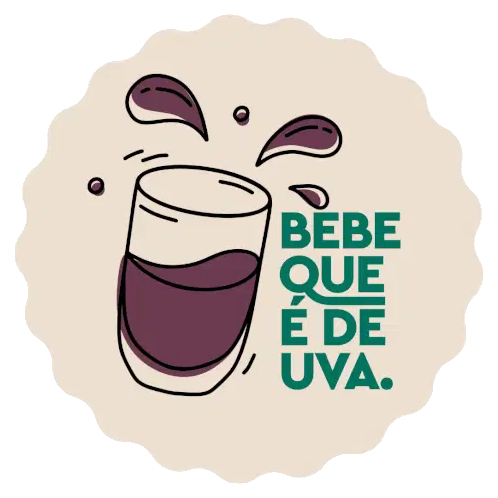 A stylized bottle of Brazilian wine (vinho brasileiro) pours dark red wine into a classic wine glass.