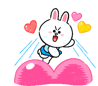 Cony, the white rabbit, angrily catches a pink heart with a yellow star.