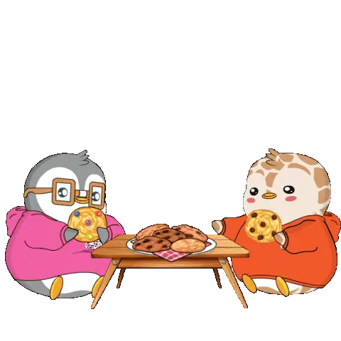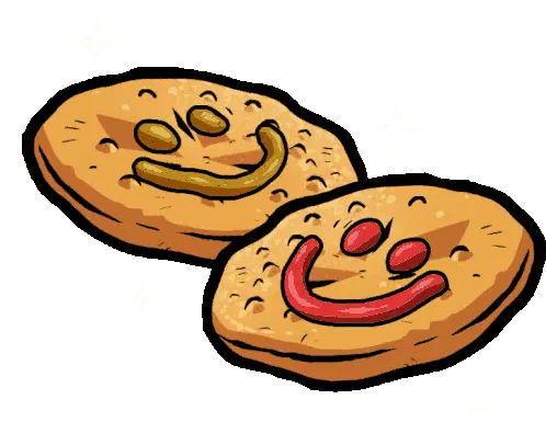 A row of pixel art heart-shaped cookies or chocolates in various shades of brown and cream, gently moving.
