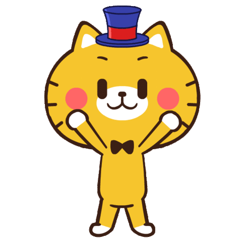 A cheerful cartoon cat character with a top hat and a spring-loaded thumbs-up hand gives approval.