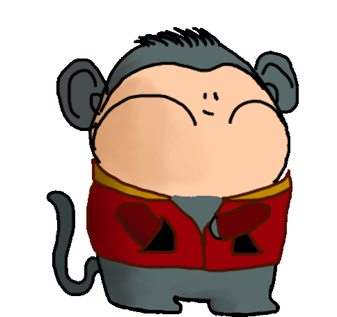 A cool cartoon monkey with grey fur and a red jacket shows off gold teeth with a confident swag.