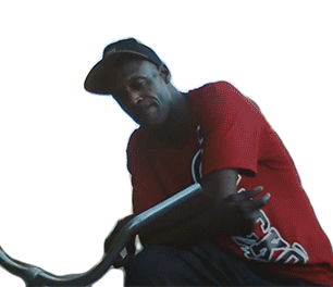 Arlissa, a cool guy, leans casually on his bike's handlebars, exuding a relaxed and confident vibe.