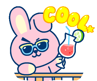 a cartoon of a bunny holding a drink with the word cool coming out of its mouth