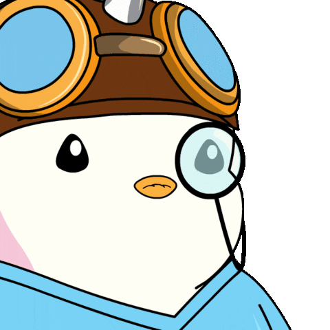 a cartoon penguin wearing a helmet and goggles is looking through a magnifying glass