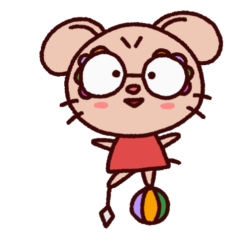 A cute, cat-eared character dramatically turns around with a cool, "ta-dah" expression, surrounded by radial lines.