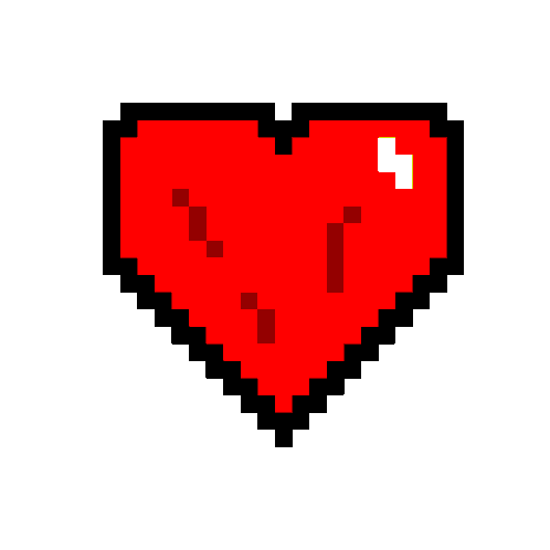 A vibrant pixel art heart, glowing red with a subtle shine, perfect for expressing love or affection in digital messages.