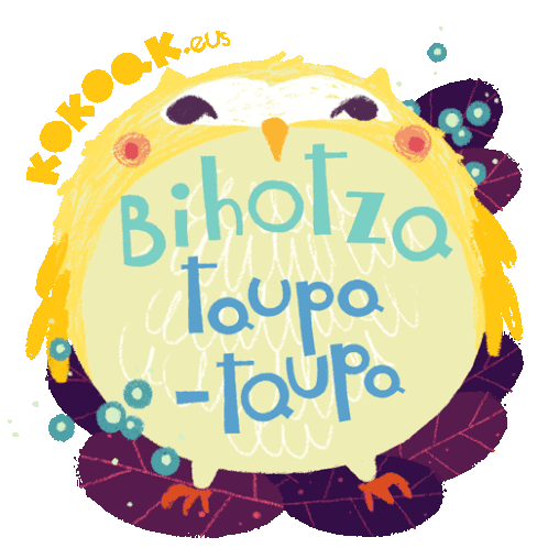 a drawing of an owl with the words bikotza taupa-taupa on it