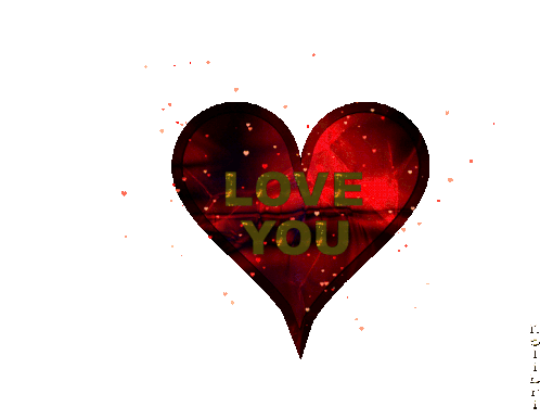 Animated red heart with 'LOVE YOU' text, rotating and sparkling with small hearts, expressing affection.